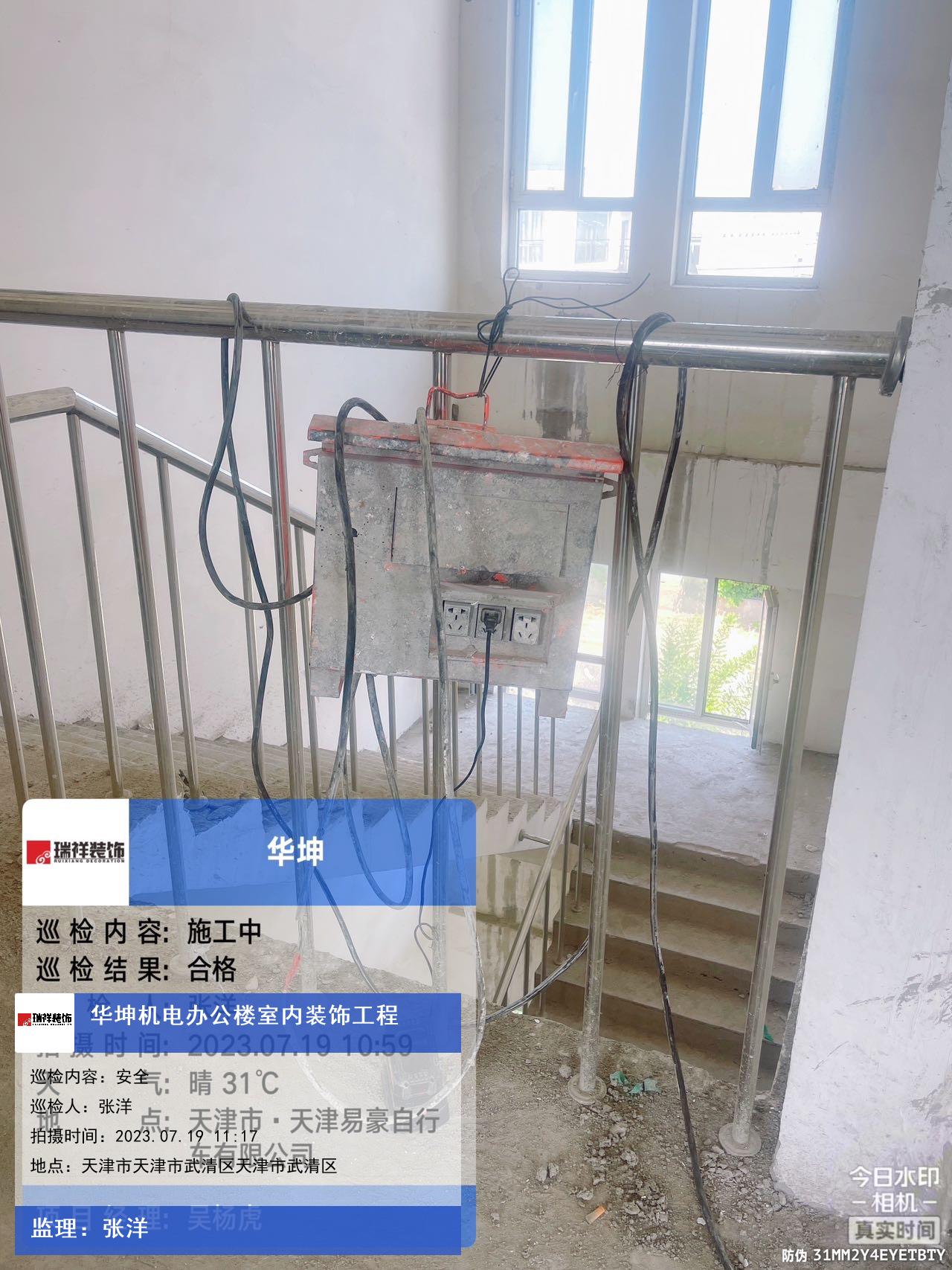 版权声明:本站所有文章除特别标注授权发布外,其他文字内容均为原创,享有著作权保护,未经许可不得以任何形式进行转载(包括且不限于:媒体、网站、公众号等)。本文链接 -> 天津华坤机电设备有限公司写字楼装修2023年07月19日工程监理巡检