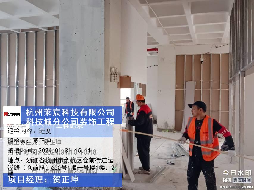 版权声明:本站所有文章除特别标注授权发布外,其他文字内容均为原创,享有著作权保护,未经许可不得以任何形式进行转载(包括且不限于:媒体、网站、公众号等)。本文链接 -> 杭州莱宸科技有限公司科技城分公司写字楼装修设计2024年01月31日项目经理巡检